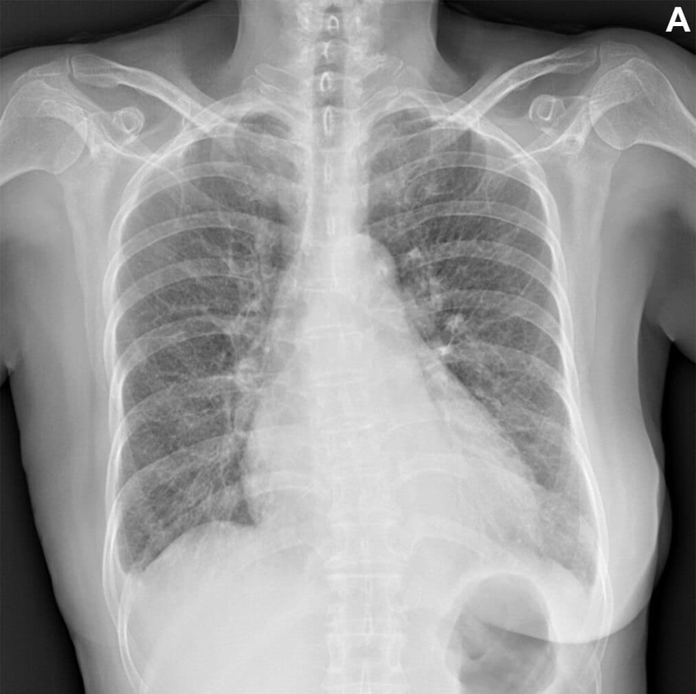 Instance of an acceptable AI– generated breast x-ray report. (A) Anteroposterior chest x-ray in a 68 -year-old female individual that visited the emergency division due to acute-onset dyspnea shows an enlarged heart, reciprocal pleural effusion, and reciprocal interstitial thickening, suggesting cardiac arrest and interstitial pulmonary edema. (B) The AI-generated record properly describes the findings of the x-ray and recommends a feasible medical diagnosis. All 7 thoracic radiologists assessed the AI-generated report as acceptable without revision. RSNA